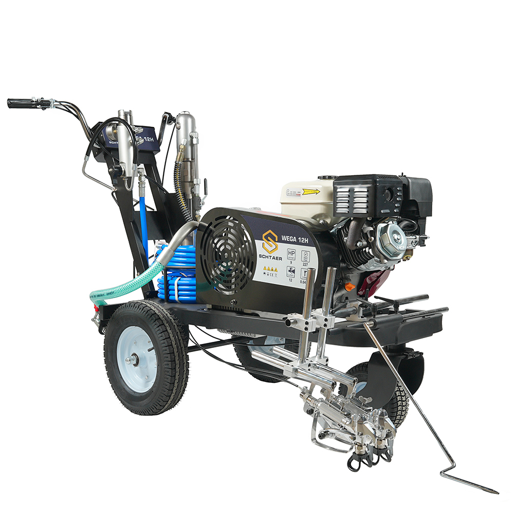 Высокоточная разметочная машина Wega12H от компании Schtaer — это мощное и многофункциональное оборудование, предназначенное для точного нанесения линий и разметки на различных поверхностях. Данная модель оснащена гидравлическим насосом, что обеспечивает стабильность работы и высокую производительность.