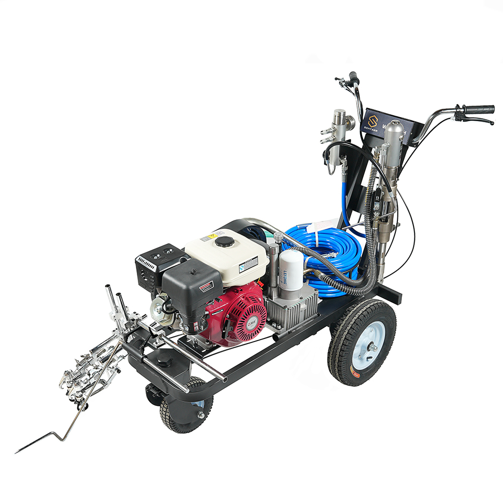 - Универсальность: Подходит для нанесения разметки на парковках, спортивных площадках, аэродромах и других объектах.- Гидравлический насос: Обеспечивает плавное и точное нанесение линий.