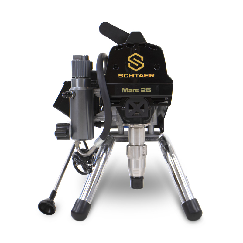 Schtaer Mars 25 – компактный легкий поршневой окрасочный аппарат с фильтром материала, электронной регулировкой давления и бесщеточным мотором.