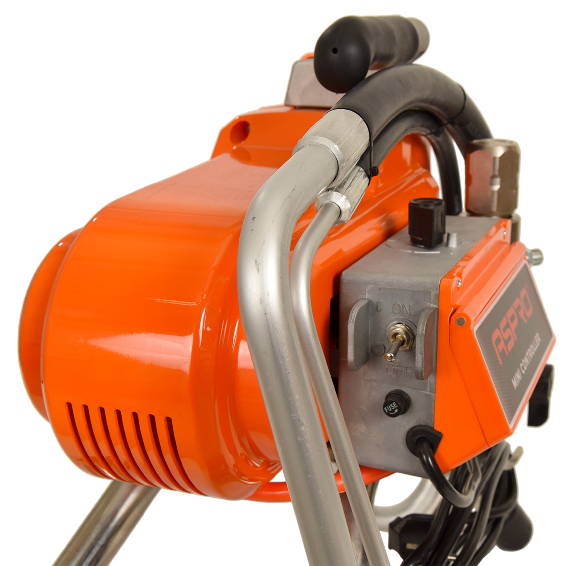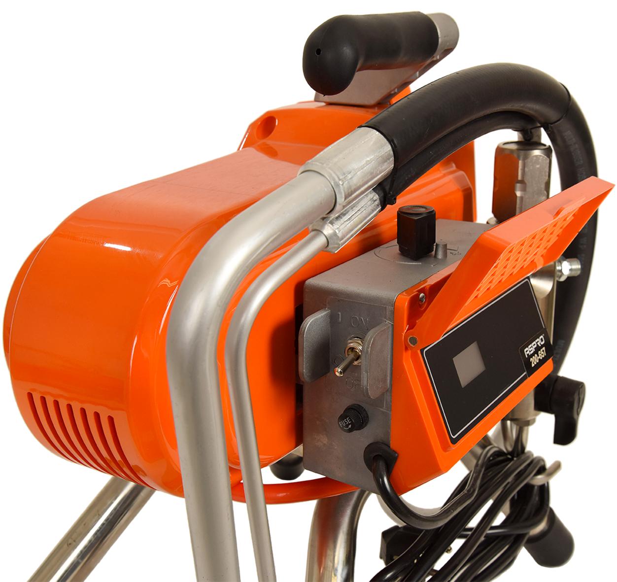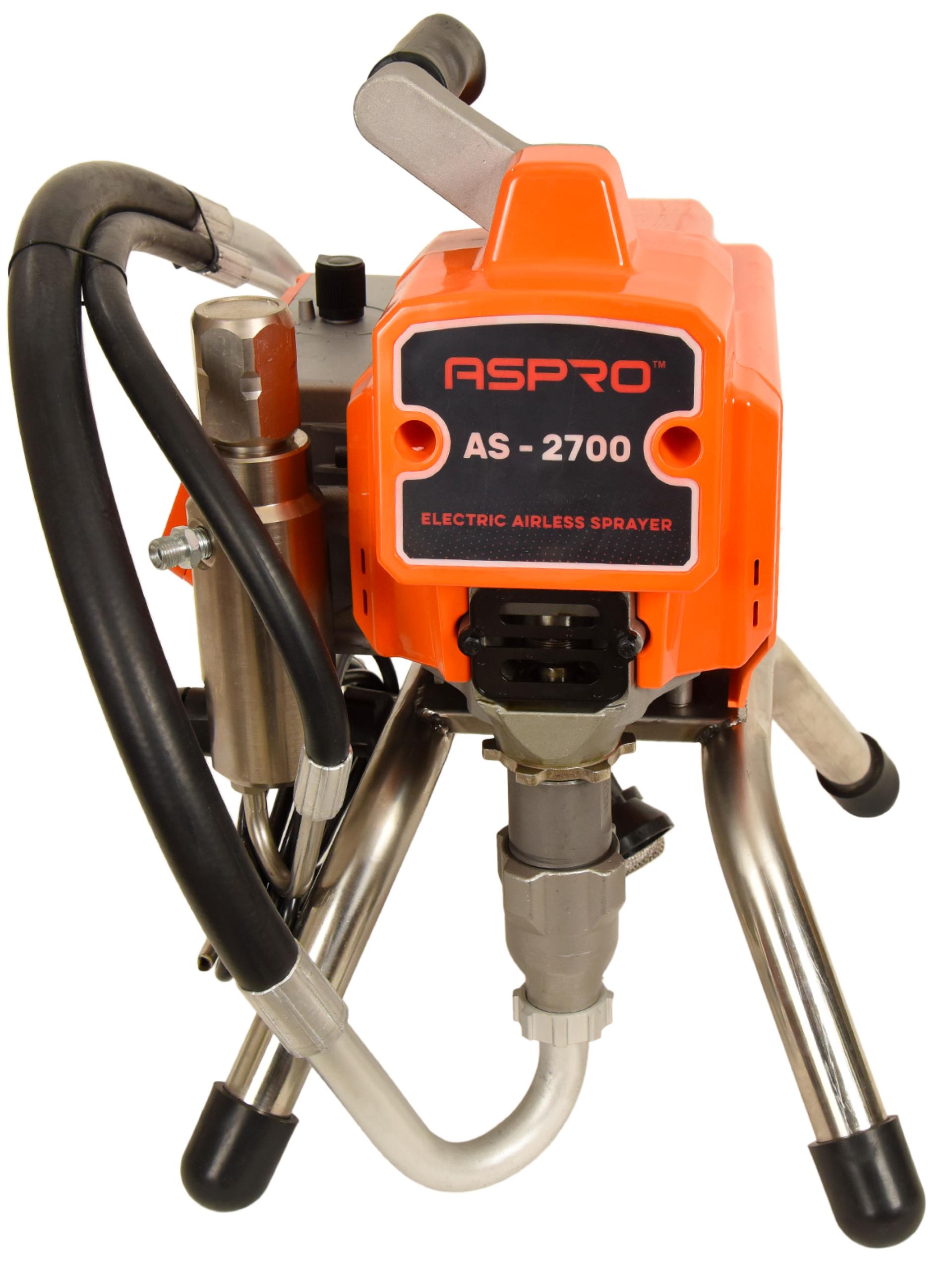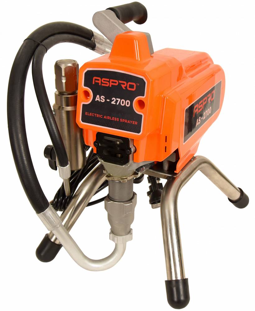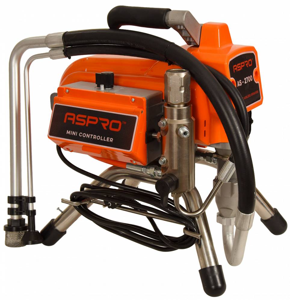 ASPRO-2700 – покрасочный аппарат, работающий по принципу безвоздушного распыления. Данный метод предполагает диспергирование (т.е. разбитие на микрочастицы) лакокрасочного материала при его непосредственном прохождении через сопло краскопульта. Распыляясь подобным образом, жидкость не разбрызгивается по сторонам и точно ложится в направленное оператором место.